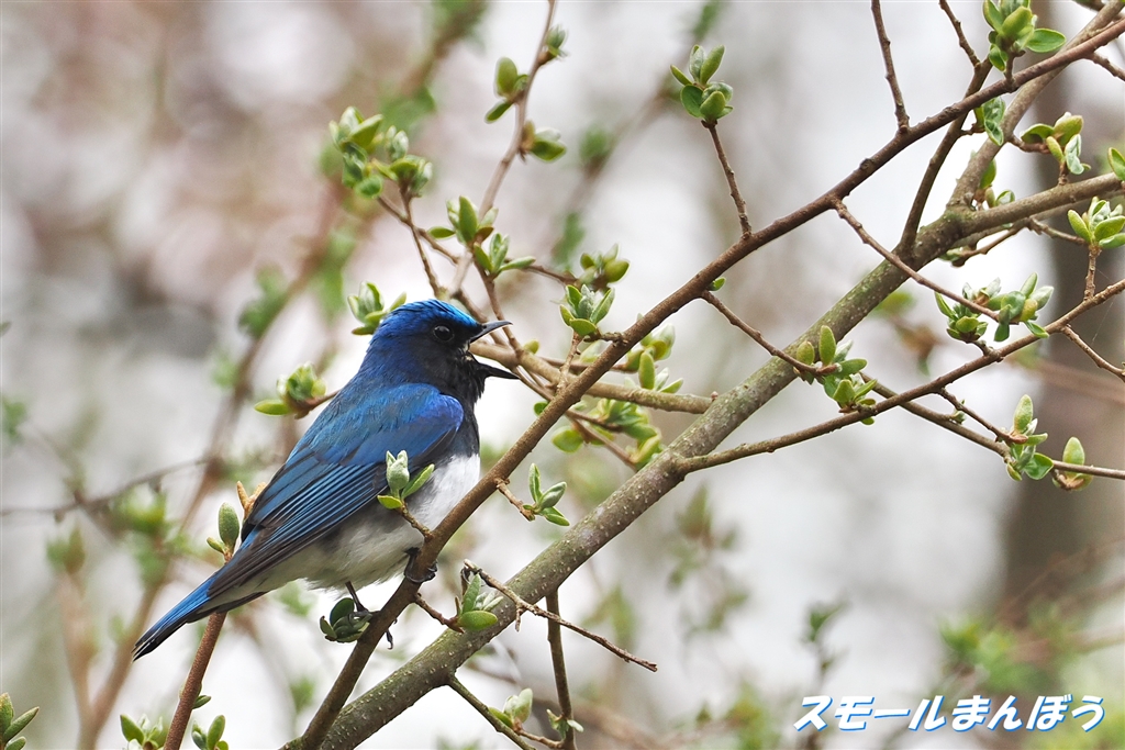 パッカンと大口開けて囀るオオルリ