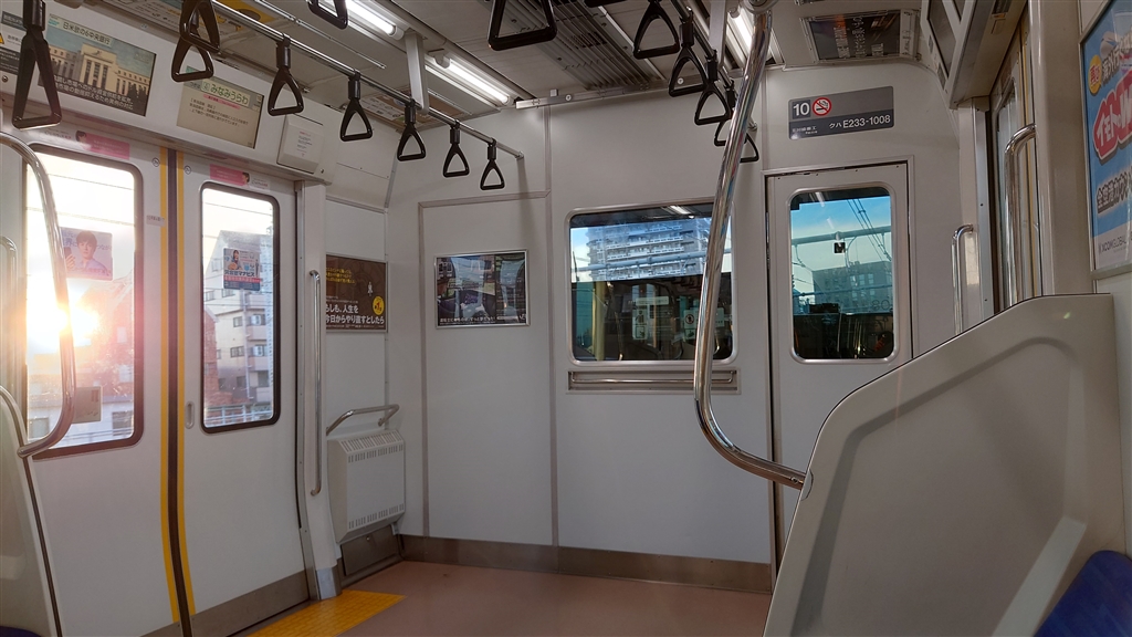 位置が揃っている吊り革。JR東日本です。