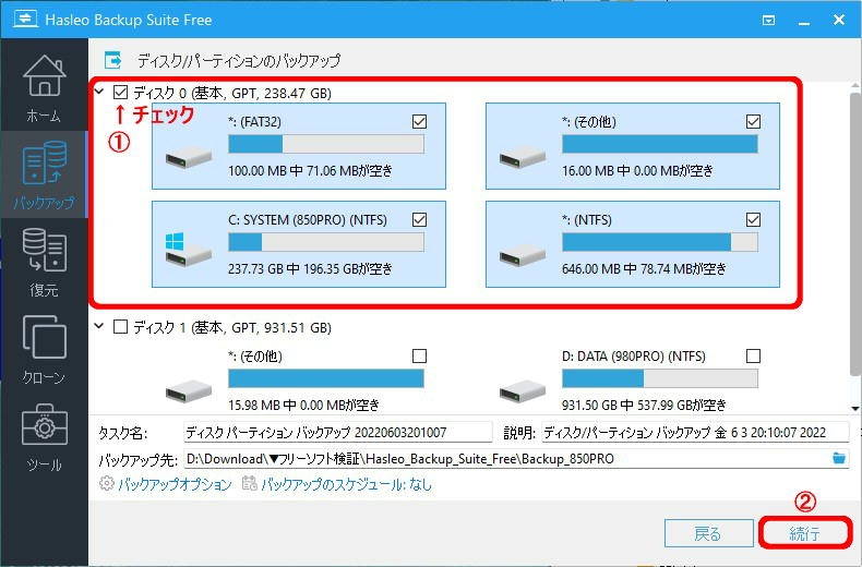 ディスク/パーティションのバックアップ