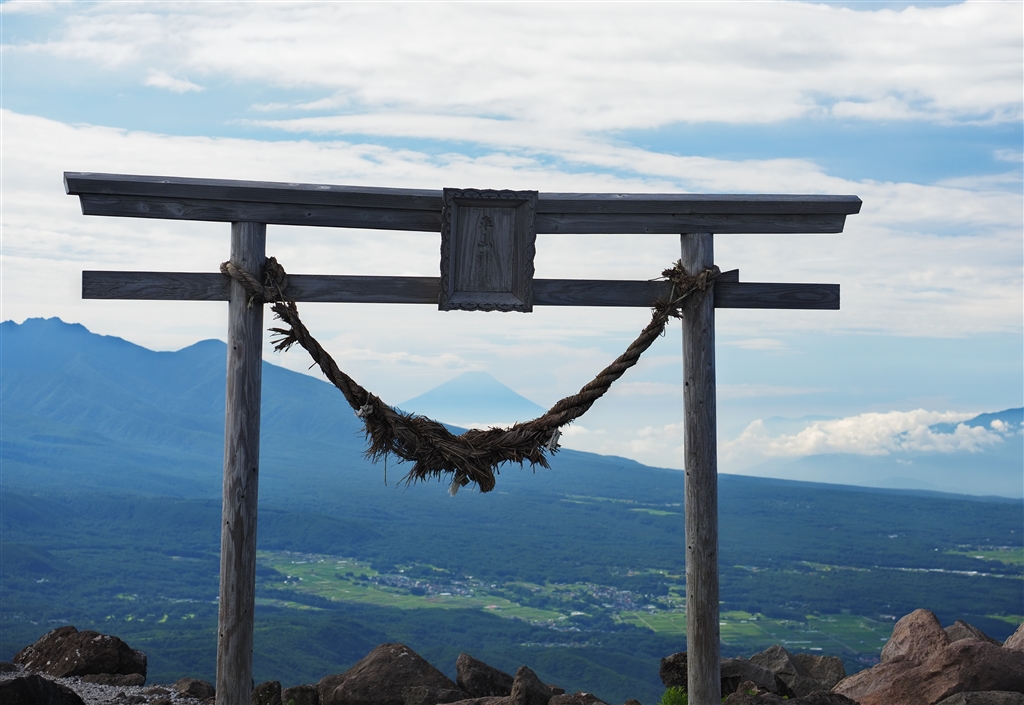 鳥居越しに富士山を遠望