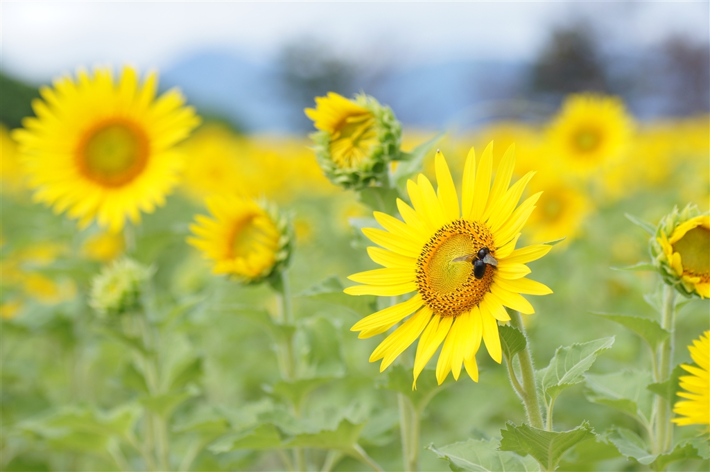 マルハナバチの仲間とひまわり。