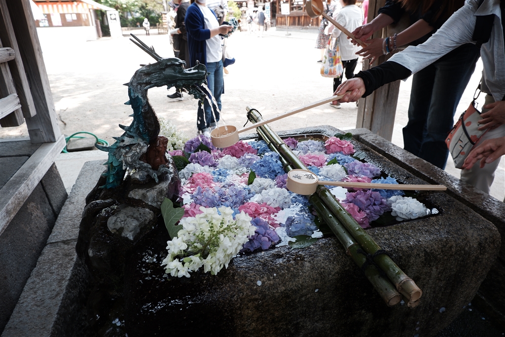 手水舎には紫陽花。