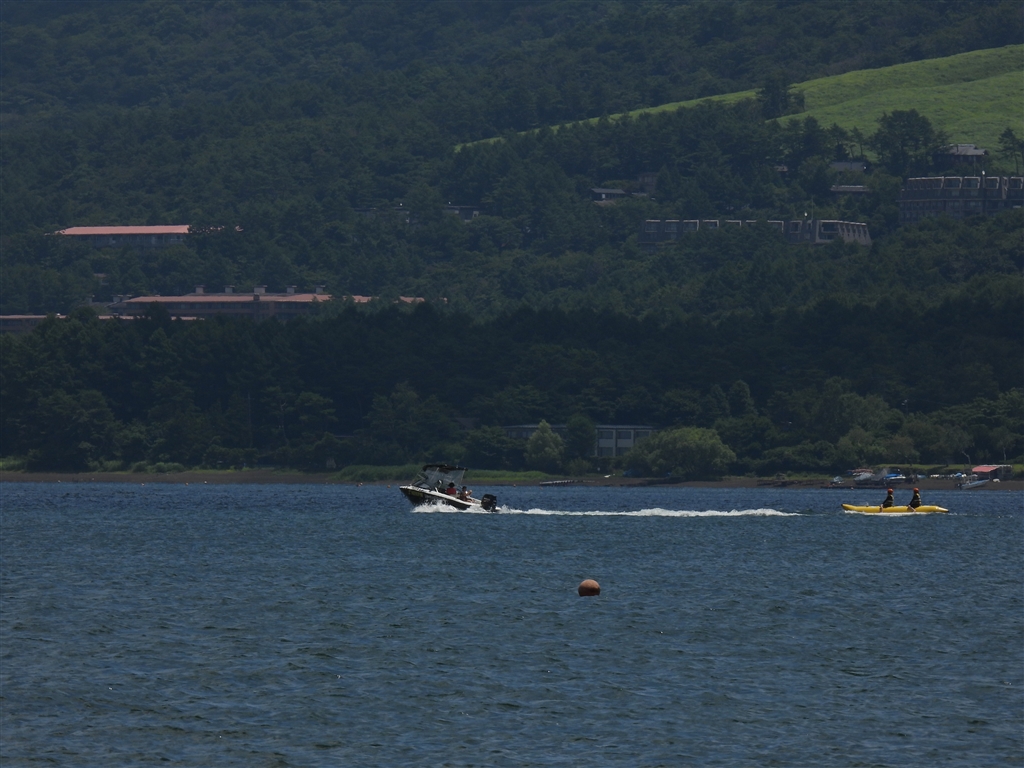 山中湖。富士山は背中側で雲の中。