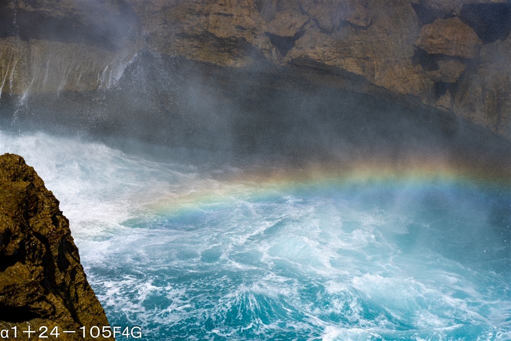 波しぶきで虹ができます