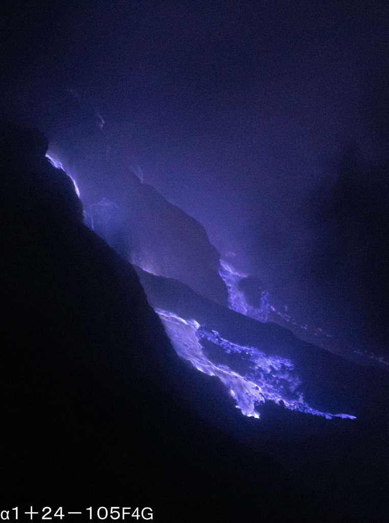 「地獄の炎」、硫黄ガスが燃える炎です