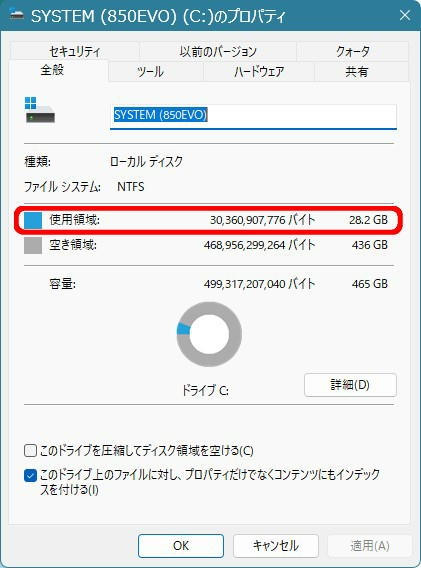Cドライブの使用領域