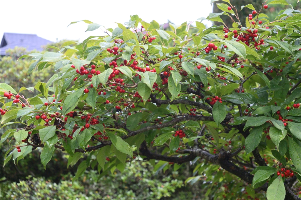ウメモドキ ヒヨドリが食べに来ます
