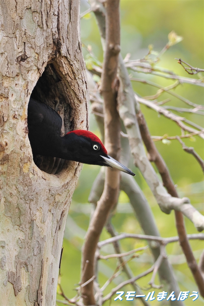 メスの帰宅を待つクマゲラのオス