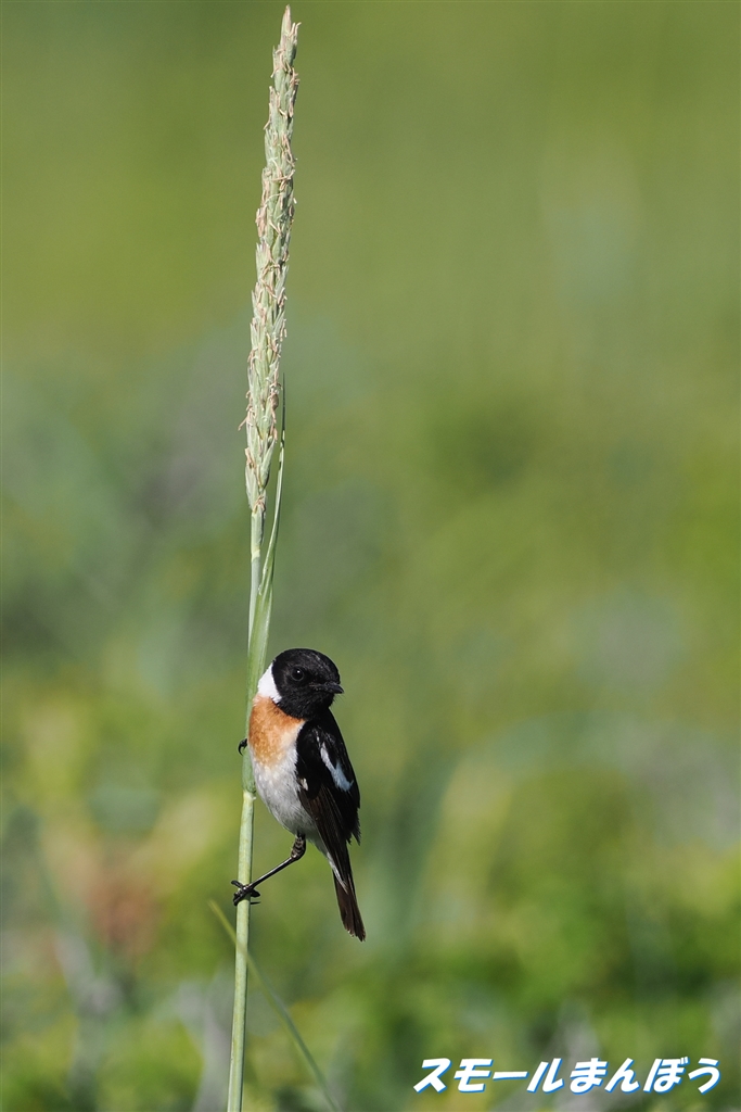 茎に掴まってチラ見なノビタキ