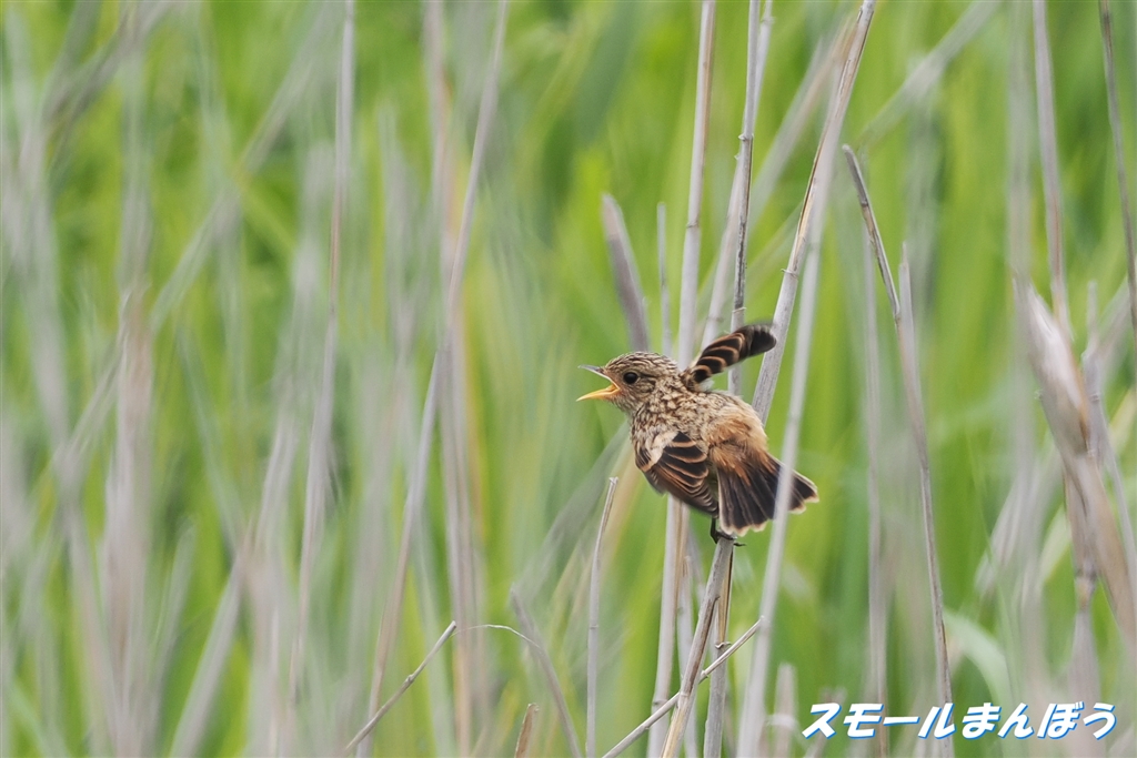 ノビタキのチビちゃんは盛んに餌を強請っていました