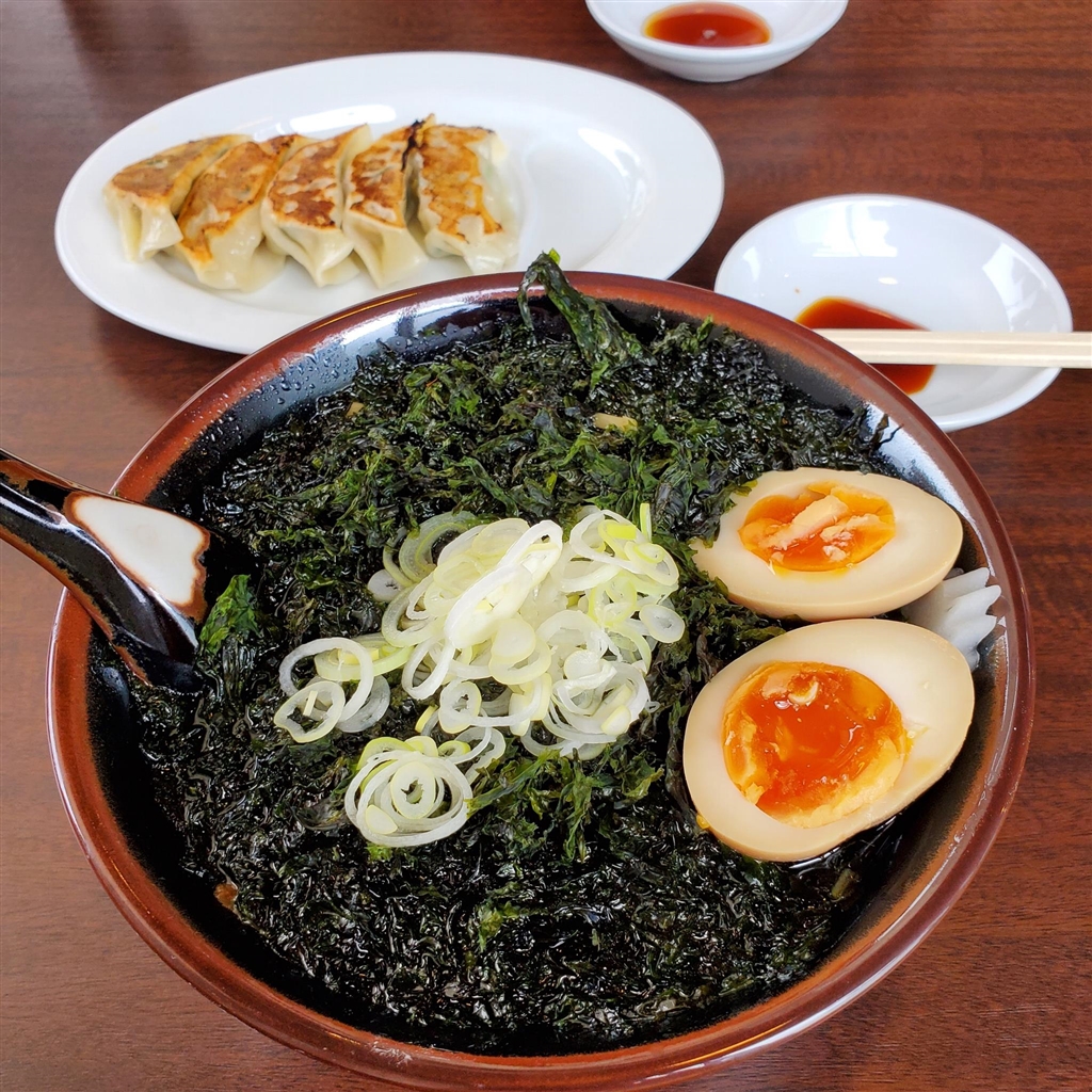 海苔たっぷり!ブラックらぁめんに煮卵追加
