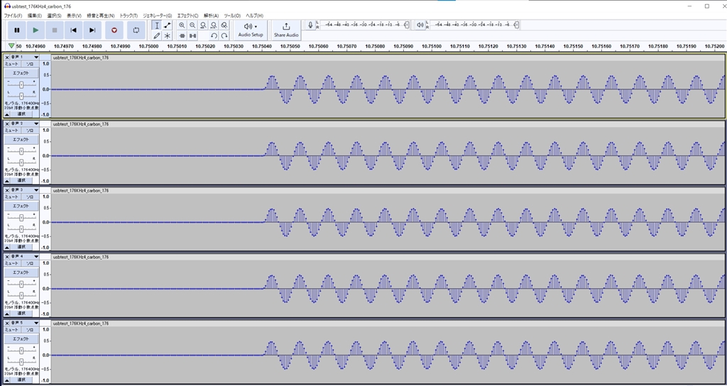 5本の波形全体の比較 音声前後にマーカー信号