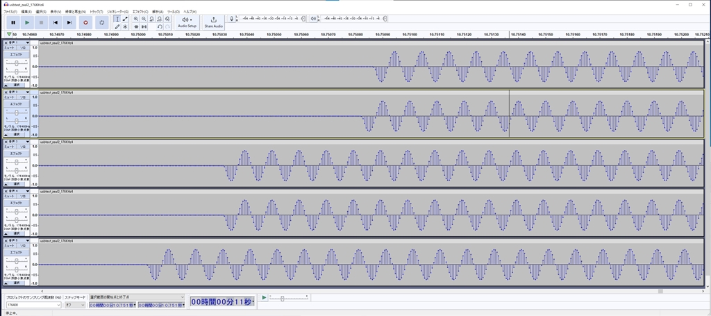 5本の波形全体の比較 音声前後にマーカー信号