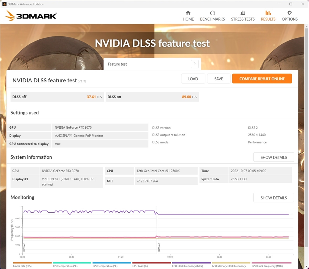 DLSS feature test (Performance) i5-12600K ROG-3070(nonOC bios) 22℃ 22H2