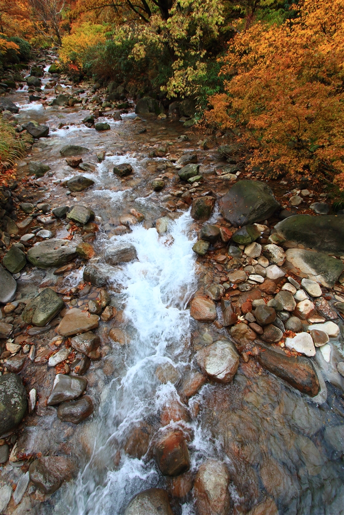 ときには沢もこわごわと渡って行くと…