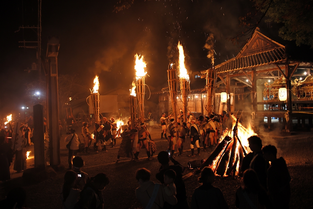 100kgもある大松明を立てるのは大変な仕事になる