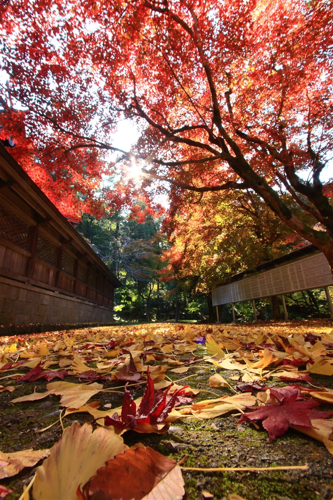 下はイチョウの落ち葉が敷き詰められ上は紅葉で真っ赤でした