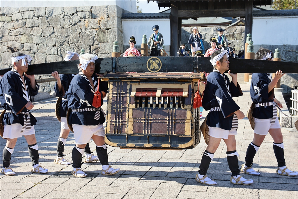 赤穂城跡の大手門を出る大名行列