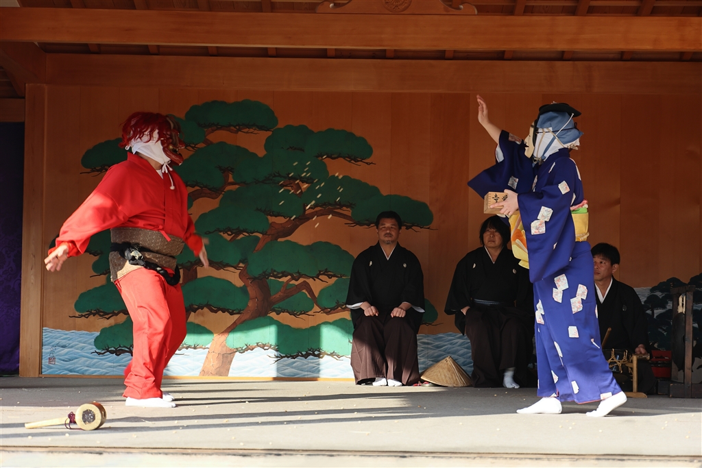 鬼に豆を投げつけて退散させる