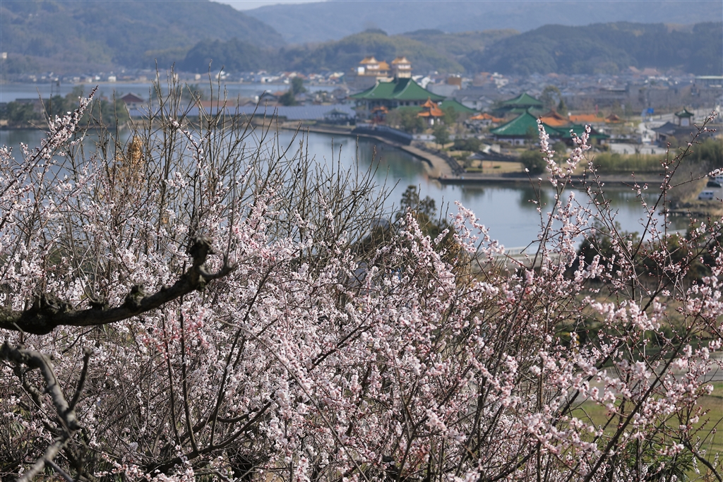 東郷湖をバックに野花梅渓