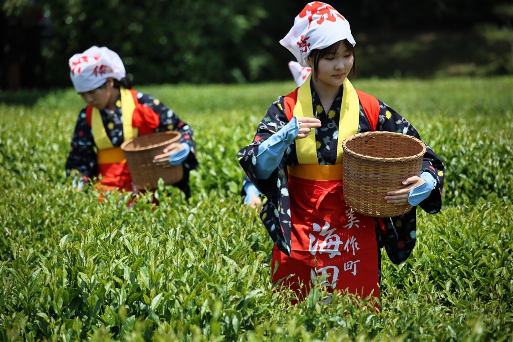 新茶を摘む茶摘み娘@後楽園(岡山)