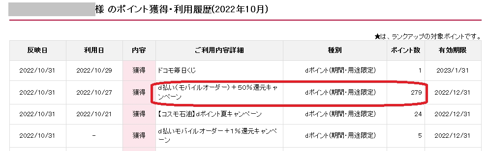 279円分の期間限定dポイント付与!!