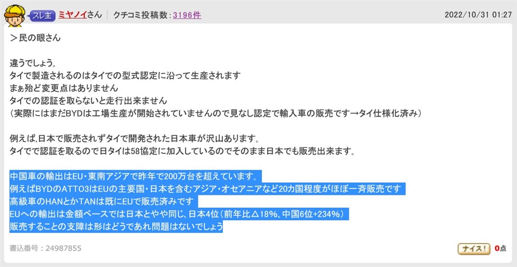 『50万円で話題の宏光evが日本で発売の見込み』 自動車(本体) 民の眼さんのクチコミ掲示板画像1/1