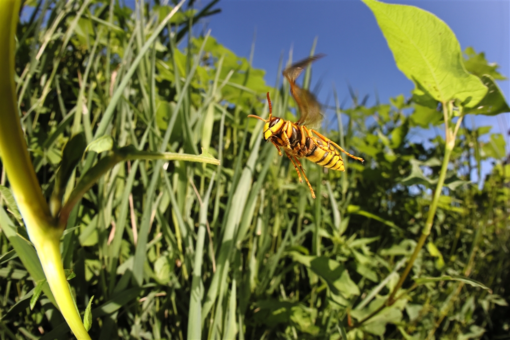 スズメバチ…電子シャッターによるローリングシャッター歪が翅に出ています