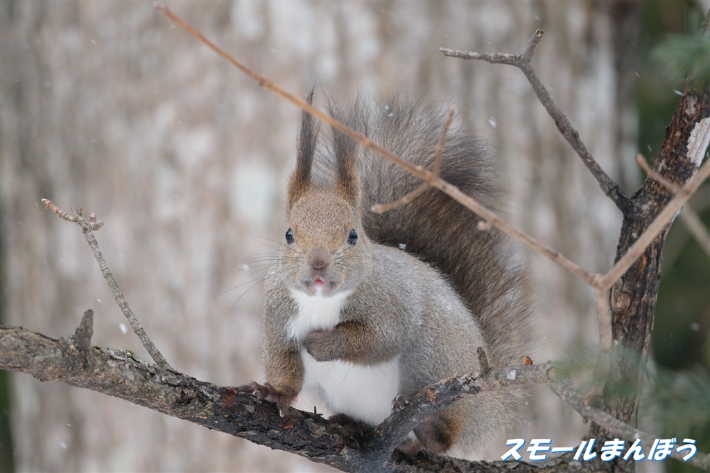 エゾリスも樹液を舐めに来ます