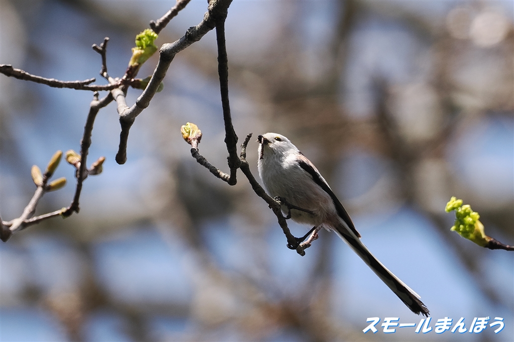 虫を咥えたシマエナガ