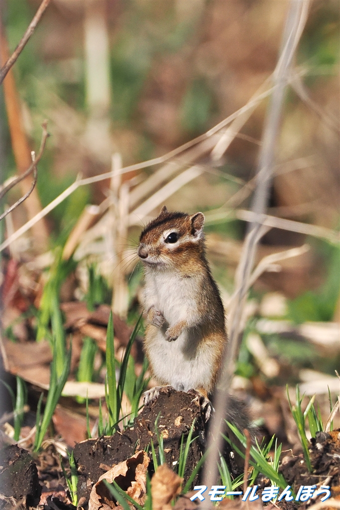 笹藪からシマリス登場(ISO感度下げてなかった)