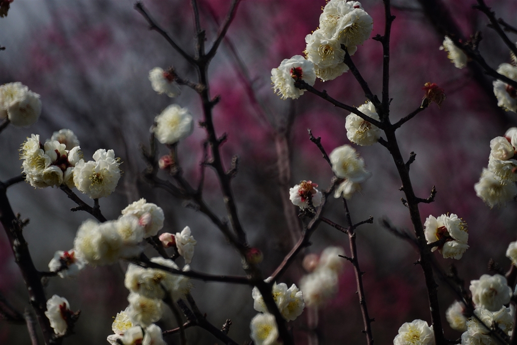 メジロの遠退いた白梅
