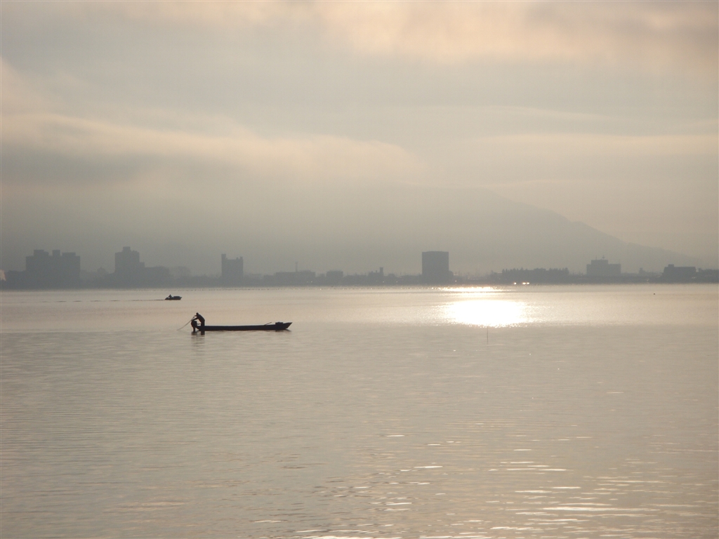 朝の諏訪湖