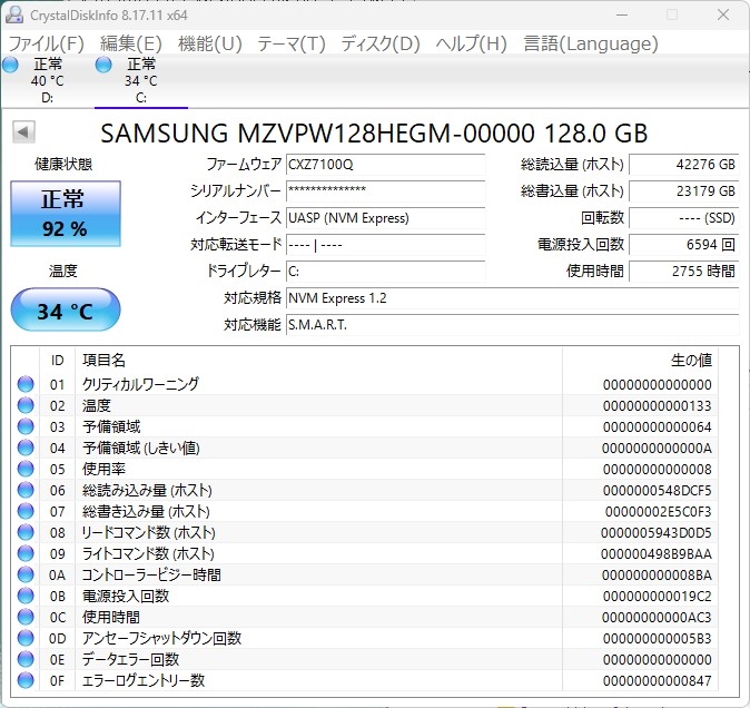 『SM961 128GB USB3.2Gen2』 ユーティリティソフトすべて 夏のひかりさんのクチコミ掲示板画像1/4
