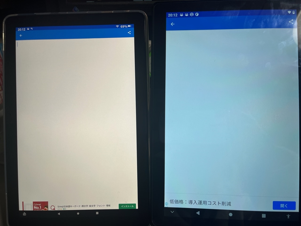 右がiplay 20p 左がfire hd 10 plus