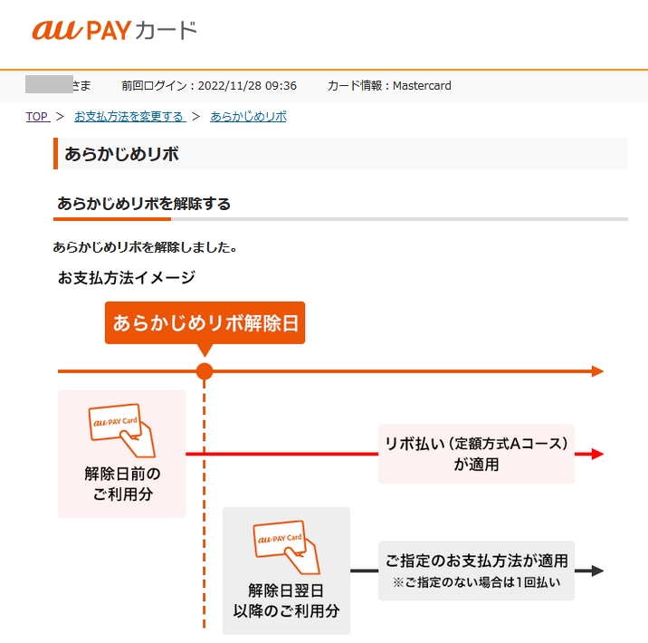 あらかじめリボを解除しました!!