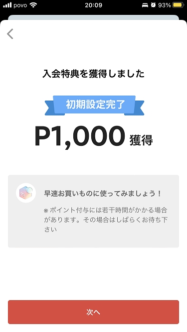 メルペイポイント1000P獲得!!