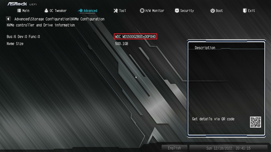 B450M Pro4 NVMe Configuration表示あり