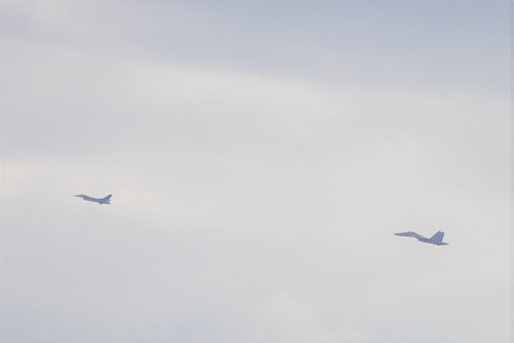 猛禽類撮影地を飛ぶ機影・・・あれはもしやF2とSU−30ではとがっくり