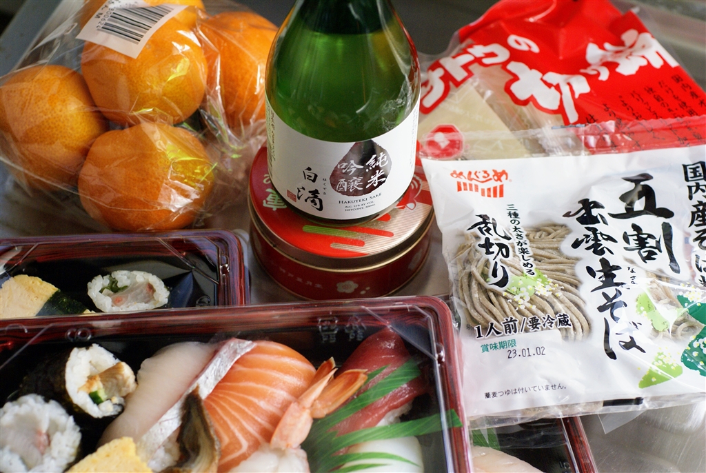 餅とミカンと年越しそば、夜はバイト先の仲間とミニ忘年会