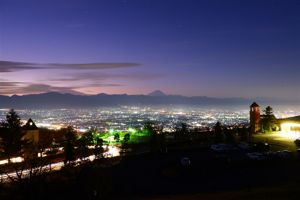 雲ってなければ夜景と富士山のコラボが見られます