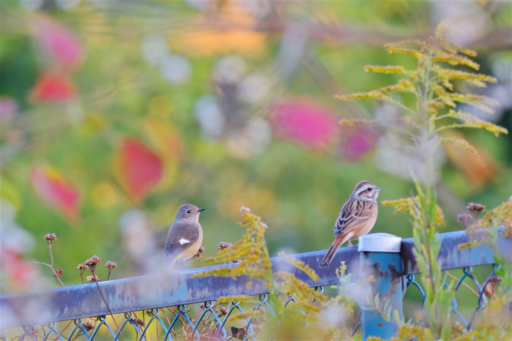 ジョウビタキとホオジロのコラボ