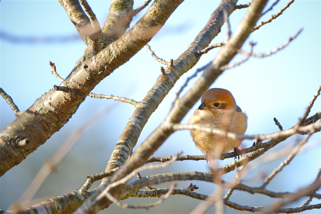 何かを狙っているモズ♀