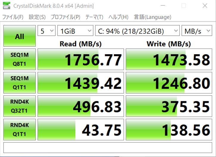 WD SN770 NVMe WDS100T3X0EのCrystalDiscMark