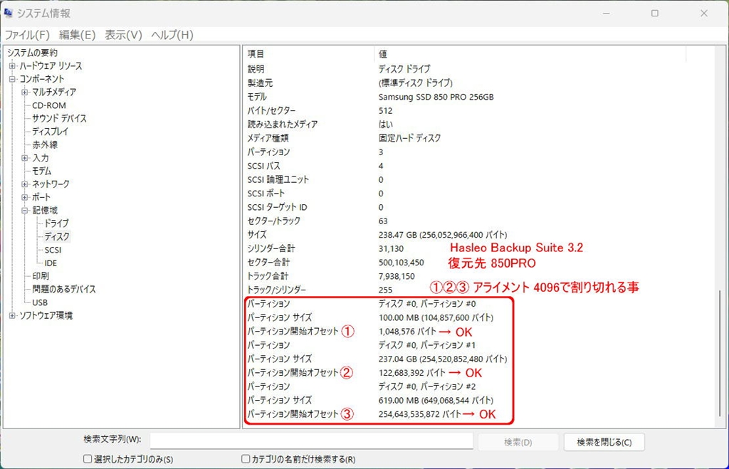 Hasleo Backup 復元先_850PROのアライメント