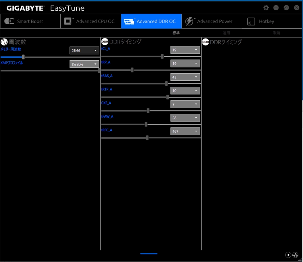 EasyTune(B22.1227.1)のAuto Tuninng選択時の「Advanced DDR OC」ページ