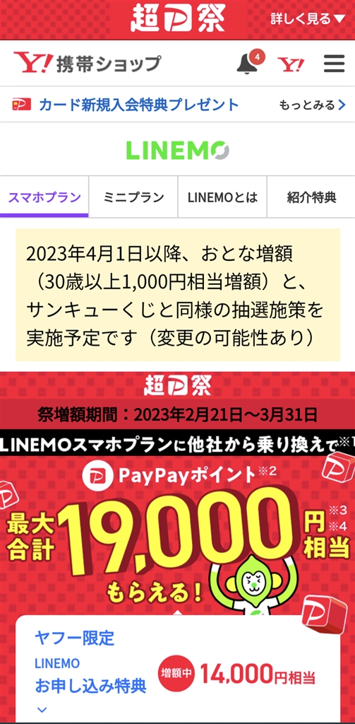 『ヤフー携帯ショップ』 クレジットカードすべて LINEMOの18さんのクチコミ掲示板画像1/1