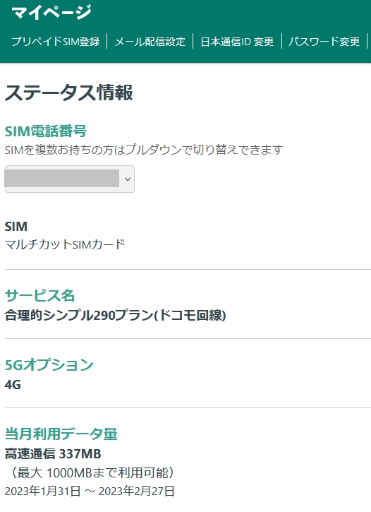日本通信データ消費量337MB