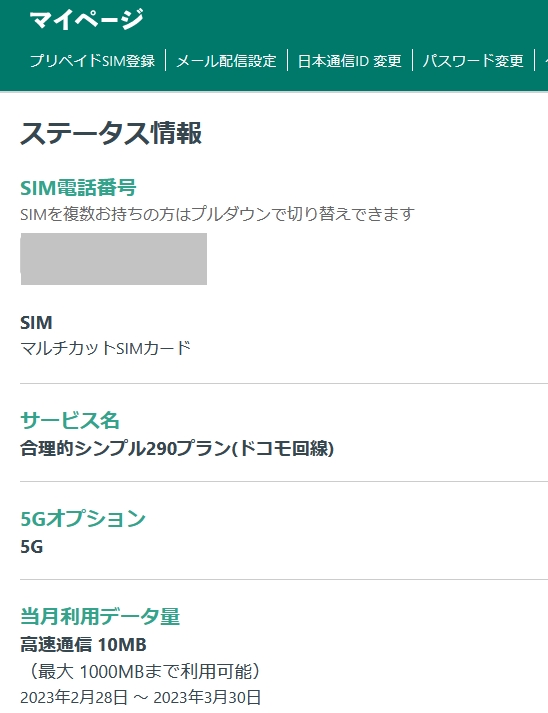 当月利用データ量10MB
