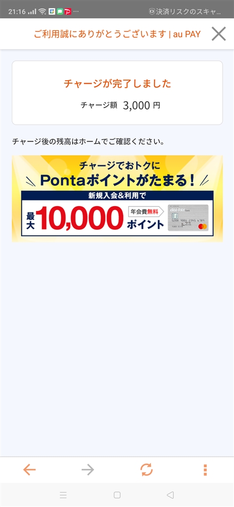 チャージ3千円成功しました!!